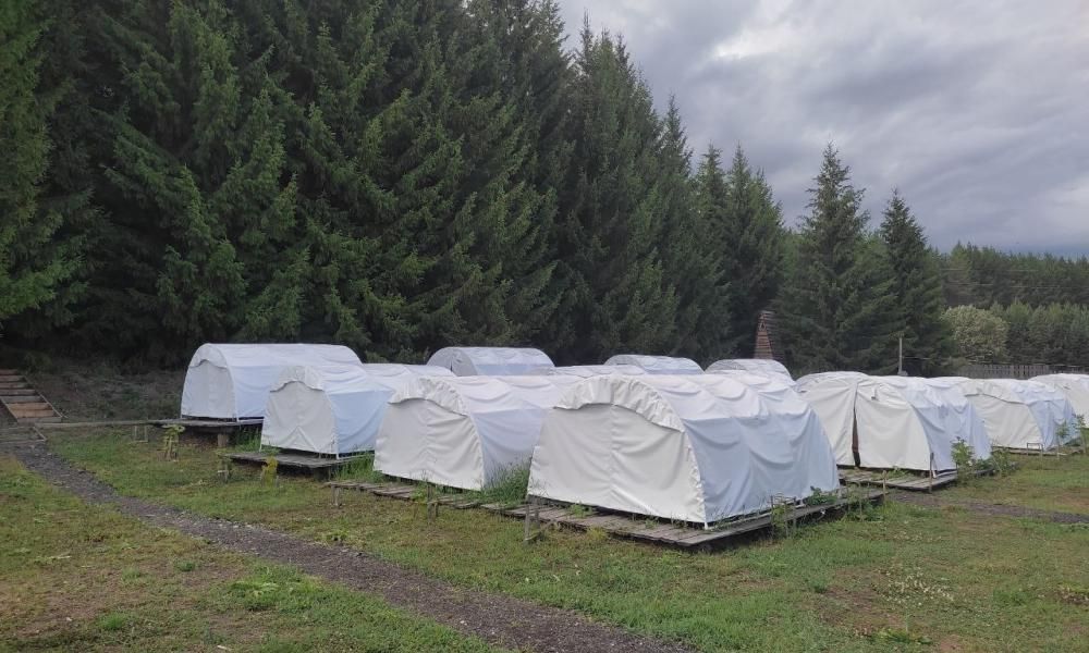 Кемпстер оборудован для более комфортного размещения, чем в обычном походе: палатки стоят на деревянных настилах (внутри мягкие матрасы), есть столовая, душевые, туалеты. Неподалеку детский городок, где малыши смогут поразвлечься. Есть пруд, где можно поплавать, попрыгать на аквабатуте, встать на сап-борд.