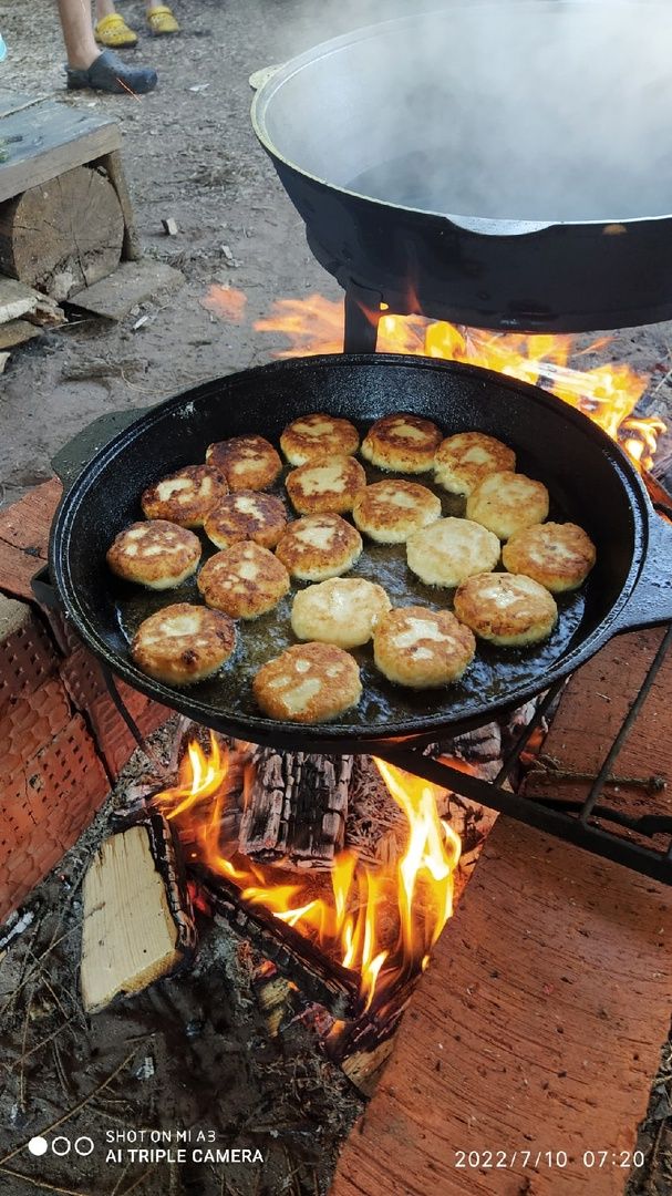 В кемпинге работает походная кухня - все блюда приготовлены на костре.