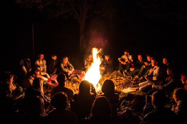 Когда стемнеет, мы разожжем большой костер и сядем вокруг попеть под гитару походные песни, поиграть, да и просто пообщаться.